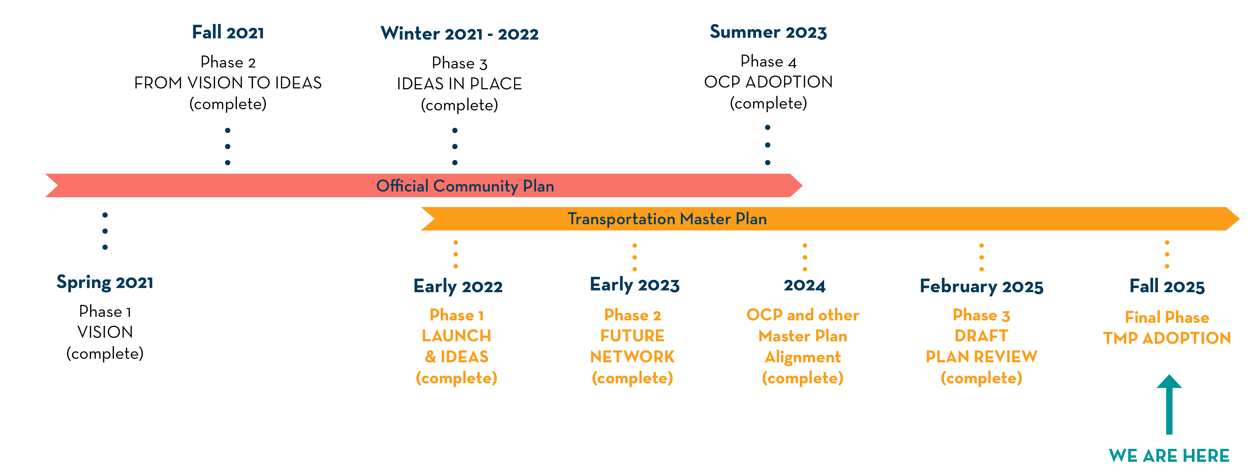 The TMP update has been developed through an extensive three-phase, multi-year technical and community engagement process, in alignment with the Official Community Plan (OCP) Update.